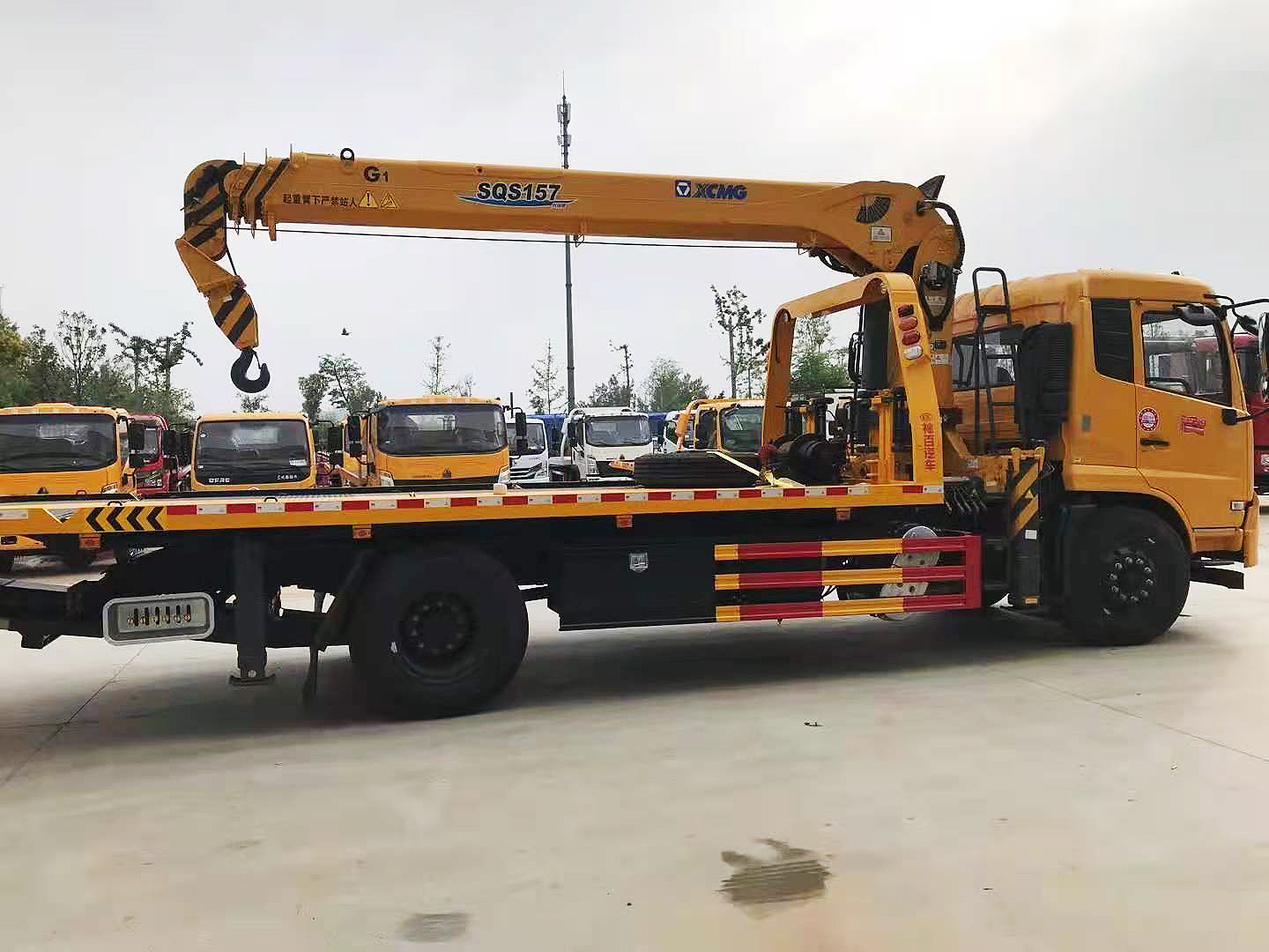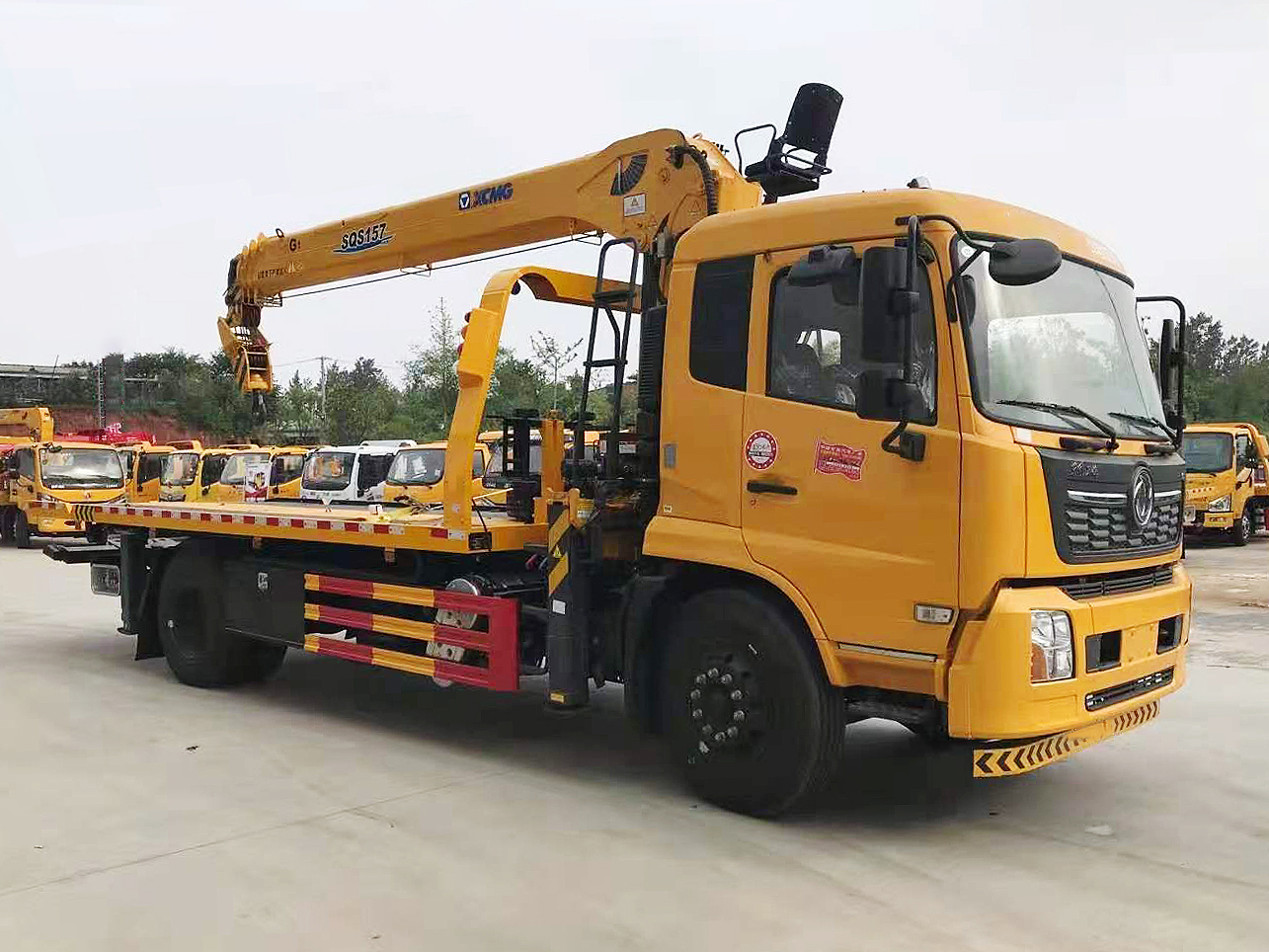 專用功能配置:上裝采用 6mm 高強(qiáng)度花紋板制作,(防滑能力強(qiáng),承載能力高,外表美觀),該車平板總長(zhǎng)度為 6.5米(含尾部板長(zhǎng) 1.1 米),寬 2.55 米,平板承載質(zhì)量為 10噸。采用嘉善取力器,長(zhǎng)源泵、意大利海德閥 加兩個(gè)平衡閥,液壓油管采用耐壓雙層鋼絲油管,抗壓力達(dá)到 18 兆帕,1 個(gè)工具箱,配兩個(gè)小車(**輪),4 根捆綁帶,L 型抱胎架一對(duì),托叉一對(duì),托叉座一對(duì),鏈鉤一條,后工作燈 2 只,1 個(gè) 10噸液壓絞盤(30米鋼絲繩), 10噸三節(jié)臂后拖舉.